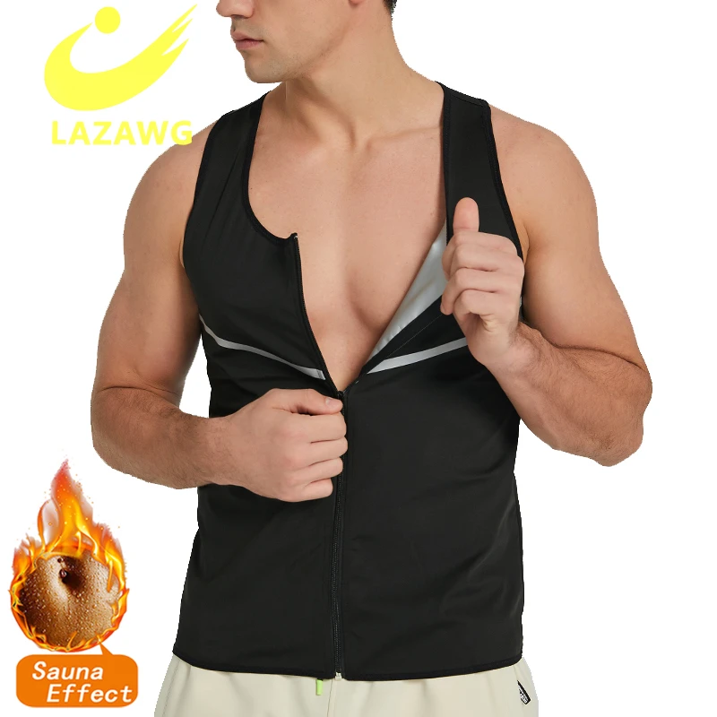 LAZAWG Men Slimming Hot Sauna Shirts Jacket Long Sleeve Tops with Zipper Fitness Shirt Weight Loss Waist Trainer Body Shapers