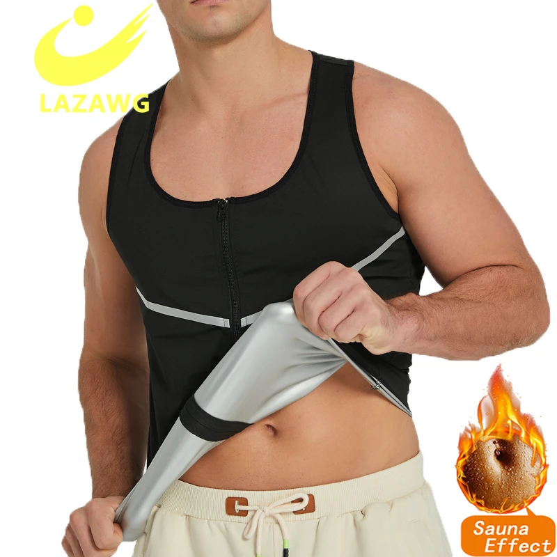 LAZAWG Hot Sweat Sauna Vest Body Shapers Men Waist Trainer Slimming Shirt Shapewear Fat Burning Zipper Fitness Jacket Sportswear