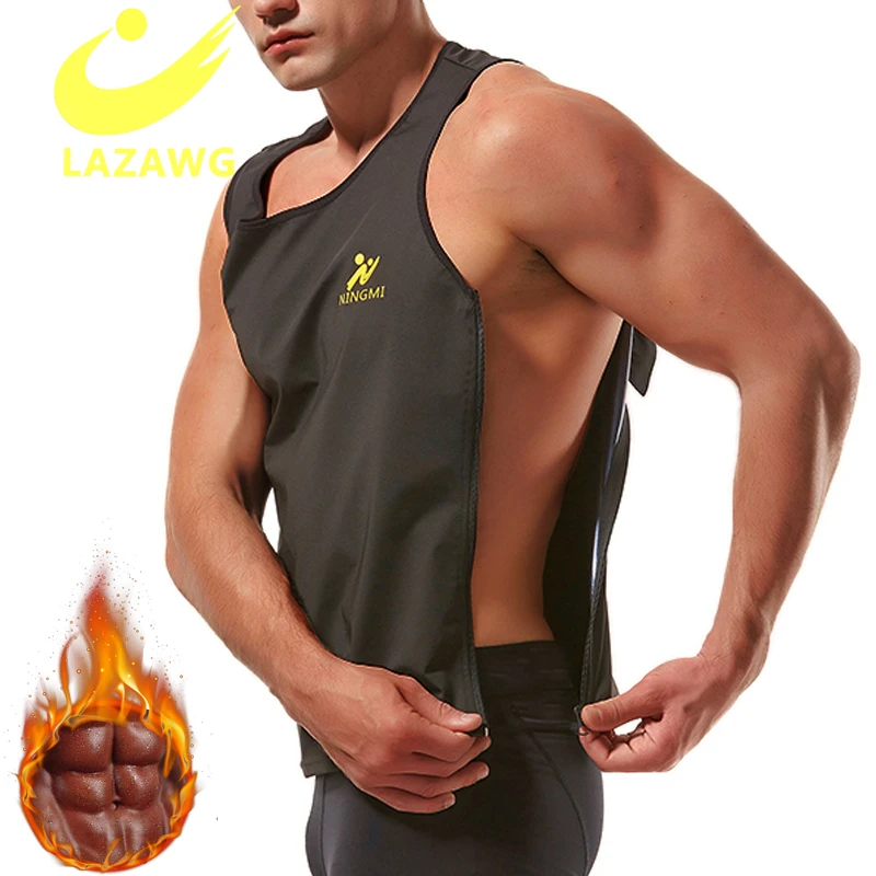 LAZAWG Waist Trainer Sweat Sauna Shirt Slimming Thermo Body Shaper Zipper Fitness Short Sleeve Gym Suit Workout Shirt Tank Top