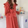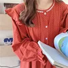 100% cotton nightgowns women homewear dress ruffles long sleeve polka dot home clothes loose soft female nightdress korea Y219