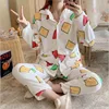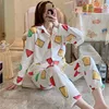Japanese Coral Velvet Pajamas Crayon Shin-chanv Ladies Sleepwear Flannel Thick Pijama Warm Home Long Sleeve Women Pajas Anime