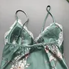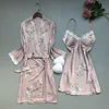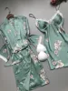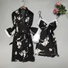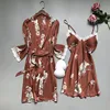 2021 New Summer Women Robe Gown Sets Silk Satin Sleepwear Flower Print Nightwear Lace Night Suit Soft Sleep Lounge Chest Pads