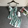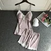 2021 New Summer Women Pajamas Sets with Shorts Spaghetti Strap Nightwear Female Silk Satin Sleep Lounge Soft Sexy Lingerie