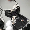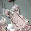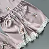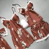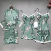 2021 New Pajamas Set for Women Spring Summer Sexy Lace Nightwear Silk Satin Sleepwear 4 Pieces Night Suit with Chest Pads