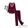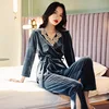 Women Clothing Sets Winter Plus Size Silk Velvet Tops for Women Sleepwear Lingerie Set Velvet Sleepwear Plants Sleep Tops