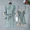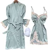 2021 New Summer Sexy Lace Robe Gown Sets Women Nightdress+Bathroe Sleepwear Female Nightwear Homewear Sleep Lounge