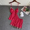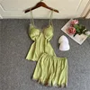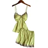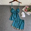 2021 New Women Pajamas Sets Silk Nightsuit Sexy Lingerie Satin Nightwear V-Neck Sleepwear Homewear Spaghetti Strap Sleep Lounge