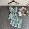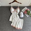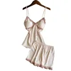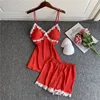 2021 New Women Pajamas Sets Silk Nightsuit Sexy Lingerie Satin Nightwear V-Neck Sleepwear Homewear Spaghetti Strap Sleep Lounge