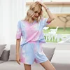 Rainbowwaves Tie Dye Pink Pajamas Women Winter Suit Short Sleeve T-shirts and Pants Lounge Set Casual Sleepwear Homewear Clothes
