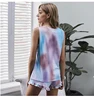 Rainbowwaves Tie Dye Loungewear Two Piece Set Sleepwear Casual Sleeveless O-Neck Top And Shorts Pajamas For Women Kawaii Outfit