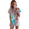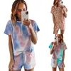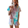 Rainbowwaves Tie Dye Pajamas for Women Two Piece Set Loungewear Casual Fashion Nightwear Pullover T-shirts Shorts Homewear
