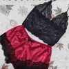 Pafiforkins Pajama Shorts Women Pajamas Sleepwear Suit Lingerie Lace Split Three-point Sexy Sling Perspective
