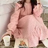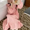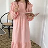 100% cotton gauze nightgown women long sleeve ruffles pink long dress homewear korean cute nightwear home vestidos autumn L461