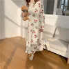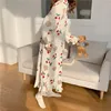 cute kawaii nightgown cherry cartoon bear women long sleeve night dress ruffles cotton gauze ladies homewear sleepdress L471
