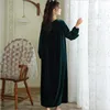 Women Winter Ankle Length Long Sleeves Home Dress Princess Lace Round Collar Vintage Nightgown Velvet Warm Loose Night Dress New