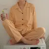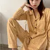 Fernan Korean Sleepwear Women Plaid Pajamas Autumn Pyjamas Yellow Pijamas Two Piece Set Nightwear Lounge Wear Pyjamas Suit Pjs