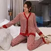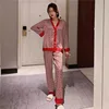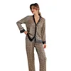 2021 Women's Satin Pajamas Set V-Neck Design Luxury Cross Letter Print Sleepwear Silk Like Homewear Xxl Large Size Nightwear
