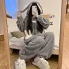 QWEEK Bunny Hooded Onesies Women Kigurumi Pajamas Cute Pijama Winter Warm Sleepwear Kawaii Female Set with Pants Long Sleeve