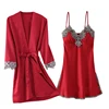 Sexy Women Rayon Kimono Bathrobe Bride Bridesmaid Wedding Set Lace Trim Sleepwear Casual Home Clothes Nightwear Satin Robe