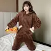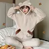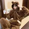 Fernan Bear Hooded Pajama Set Women Kawaii Brown Pijamas Winter Warm Sleepwear Set Woman 2 Piece Pyjamas Cute Loungewear Suit