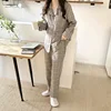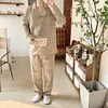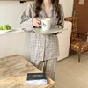 autumn winter homewear 2 piece set couple pajama set women men sleepwear plaid vintage loose home clothes trousers blouses L661