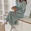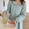 green yellow plaid nightshirts women long sleeve loose home clothes korean peter pan collar nightgowns ruffles cotton L669