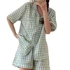ATOXY Fresh Pajamas Women Summer Short-sleeved Shorts Cardigan Plus Size French Home Service Suit Pajamas for Teen Girls