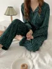 Fernan Zebra Women's Pajamas Vintage Green Autumn Sleepwear Y2K Pijama Female Set Woman 2 Piece Long Sleeve Christmas Pyjama Pjs