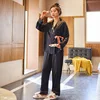 SILK Women's Pajamas Set V Neck Design Luxury Cross Letter Print Sleepwear Like Home Clothes XXL Large Size Nightwear