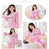 Women Autumn Winter Pajamas Set Cartoon Printed Long-sleeved Love Heart Print O-neck Pajamas + Sleep Pants