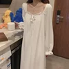 Fernan Princess Nightdress Women Autumn Long Nightgown Lace Sleepwear Long Sleeve Nightwear White Sleeping Dress Plus Size 3XL
