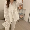 Korean Autumn Lace Elegant Pure Color Cotton 2021 Pajamas Women Cotton Sweet Palace Style Pajamas Set Night Home Clothes L712