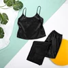 Backless Satin Sexy Pajamas Black Lace Pajamas with Pants Loose Spaghetti Strap Intimate Lingerie Sleepwear Women Pj Set