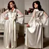 Women Silk Satin Kimono Robe Dressing New Autumn Floral Lace Long Sleeve Gown Wedding Bridesmaid Sleepwear Bathrobe
