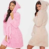 SAPJON Winter Women Flannel Bathrobe Thick Warm Robe Casual V Neck Long Sleeve Bath Robes Coat Unisex Hooded Sleepwear