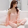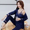 Casual Sexy Ice Silk Pajamas Women's Suit Luxury Silk Thin Suspenders and Robe Ladies Pajamas Set V-neck Design Home Service
