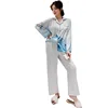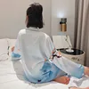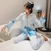 Ice Silk Long-sleeved Pajamas Women's Two-piece Suit Korean Style Simple Ladies Pajamas Spring and Autumn Luxury Home Service
