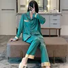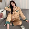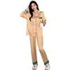 Luxury Ice Silk Ladies Pajamas Two-piece Set, Lapel Fashion Design Pajamas for Women, High Quality and Comfortable Home Wear