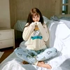 Autumn Winter Warm Flannel Women Pyjamas Sets Thick Coral Velvet Long Sleeve Cartoon Sleepwear Thin Flannel Pajamas Set