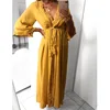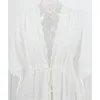 2022 Womens Long Robe Homewear Soft Hollow Lace Tie Up Waist Slim Casual Long Loose Robedres V Neck Bathdress