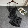 Pajamas for Woman Pyjamas Sexy Nightwear Two Piece Satin Set Suit Artificial Silk Home Lace Chest Pad Пижамы
