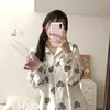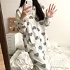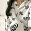 Fernan Heart Print Pajamas Women Autumn White Pijama Korean Kawaii Sleepwear Bedroom Set 2 Piece Pyjamas Loungewear Nightie Suit