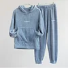 Winter Flannel Pajama Set Womens Fleece Pajamas Sleepwear Home Clothing Thicken Warm Coral Velvet Female Night wear Pijama 2021