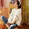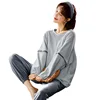 Korean style high-end home wear pajamas for women Simple and comfortable ladies pajamas set Fashion round neck design