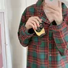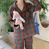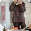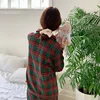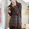vintage home clothes sanding plaid autumn winter warm pyjamas long sleeve women pajama set green red sleepwear suit 2Pcs L758