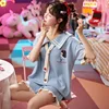 Korean Sweet Girly Style Short Sleeves with Shorts Ladies Pajamas Cute Casual Cotton Home Wear Pajamas Women Suits