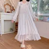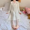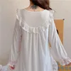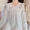 Lace Vintage Palace Style Long Nightgown Sexy Women Sleepshirts White Negligee Nighty Lolita Nightdress Sleepwear Dressing Gown