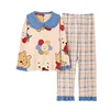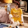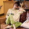 Cartoon Cotton Pajamas for Women's Autumn and Winter Warm Women's Pajamas Suit Top with Trousers Women's Home Clothes