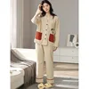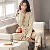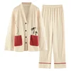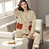 European and American Style Cardigan Long-sleeved Tops Cute Cartoon Pajamas Women's Casual and Comfortable Home Service Suit