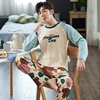 2021 Spring Autumn Men Cotton Pajamas Long Sleeve Male Pajama Set Men Long Pants Pajamas For Men New Sleepwear Suit Homewear 4XL
